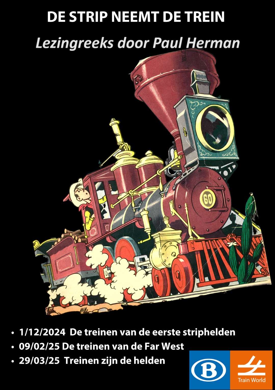 In het kader van de tijdelijke expo ‘Van schets tot trein’ biedt Trainworld een reeks lezingen aan over de rol van de trein en de spoorwegen in de stripliteratuur. De lezingenreeks is gespreid over vier maanden en behandelt de eerste strips rond 1900, de strips met als thema Far West en ten slotte de strips na 1945.